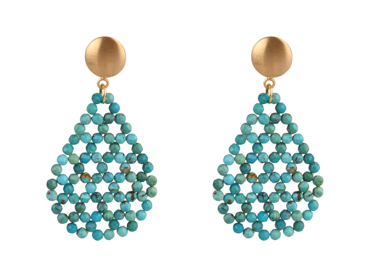 Der in Linz (OÖ) hergestellte Ohrpendler ist in Silber 925/- vergoldet mit Türkis chin. stab.